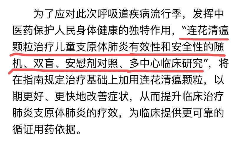 连花清瘟居然启动了一个循证医学研究,要做针对支原体肺炎治疗的随机、双盲、多中心、安慰剂对照实验!!!