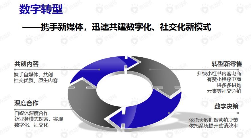 在这个过程中,可以依靠类似有赞的电商平台,学习平台和竞品、友商的成功案例。依靠视频社交平台,自上而下的让团队加入到这个改变里。