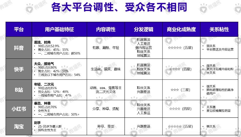 对于2020年,微播易沉淀下来短视频营销的几个动向,首先,社交平台正在多元化发展,老年人专用的短视频平台、听书平台、美妆平台、二次元平台…平台会不停的分裂,不同的用户会往细分的地方分散,让社交平台的长期动态不平衡。