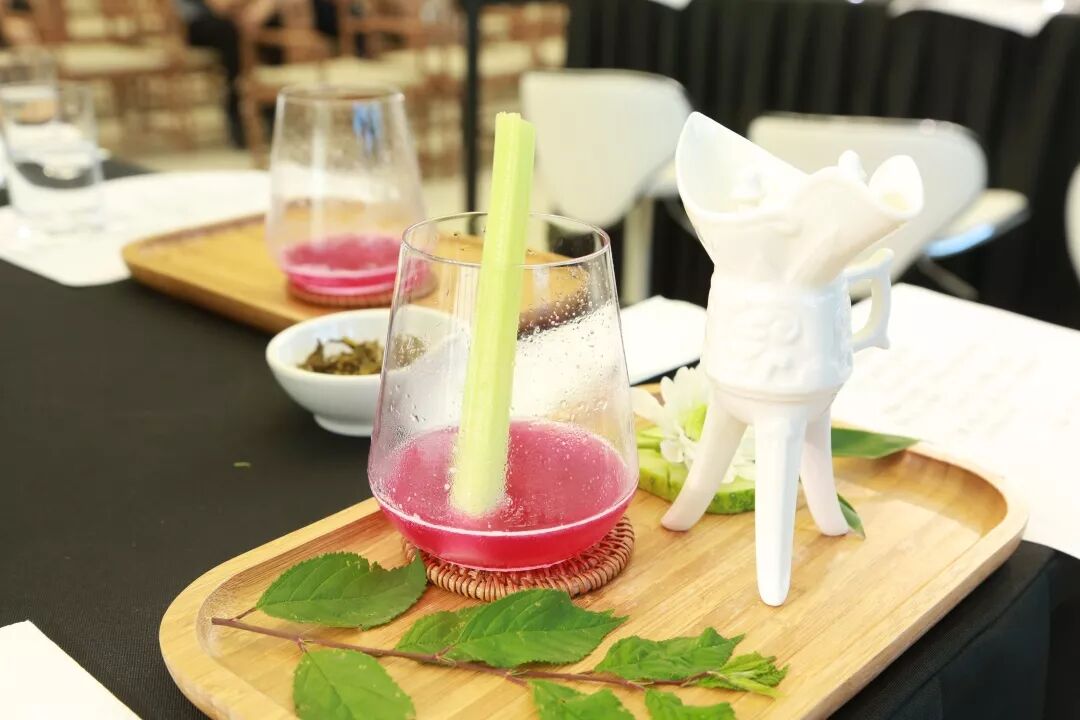在创意调饮的环节选手们都跳出了常规的茶与水果的搭配,加入了紫苏叶、黄瓜等食材,增加了调制茶饮的创意度。还有的选手将自己一次国外旅行的体验融入了自己的创意调饮里,带领评委们体验了一把浓浓的异域风情!在冲泡器具上也跳出了传统的盖碗等器具,运用了咖啡和调酒会用到的虹吸壶、V60滤杯和雪克壶等西式器具。