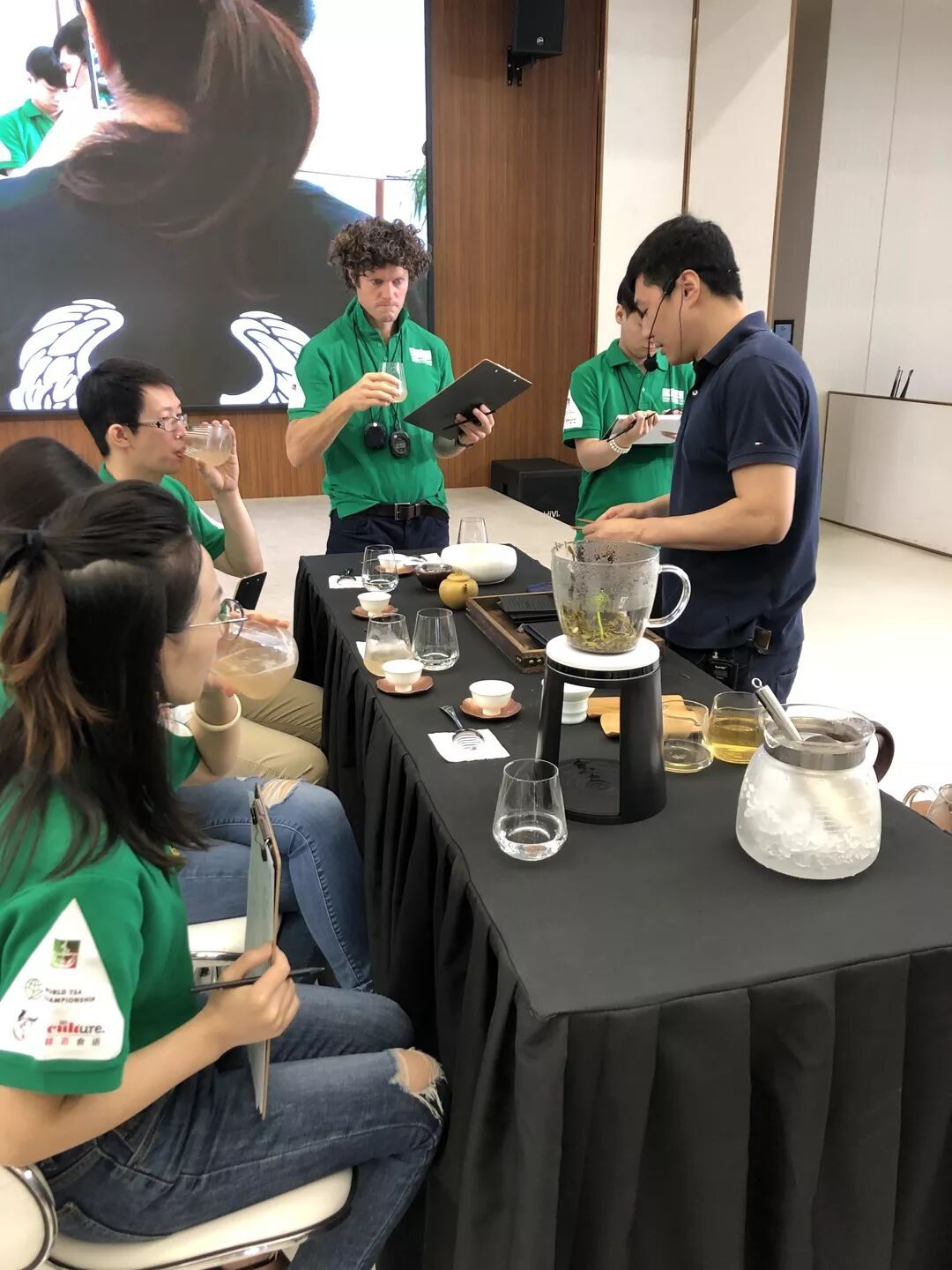 本次赛事的评委们是由一名主评委和三名感官评委以及一名技术评委组成,主评委和感官评委都是要经过世界精品茶叶赛事组织(WTC)的国际评委认证体系的严格培训和考核通过才能担任,而且所有评委们会在主评委的带领下进行赛前口感的统一矫正。