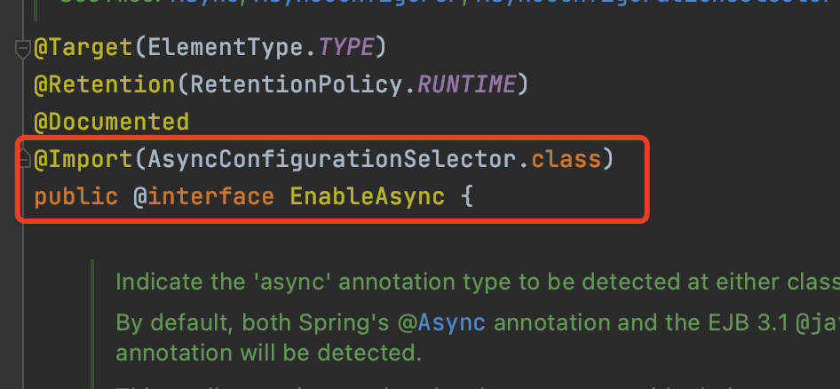 一般来说,@Import都是配合@EnableXX这类注解来使用的,比如常见的@EnableScheduling、@EnableAsync注解等,其实最终都是靠@Import来实现的。
