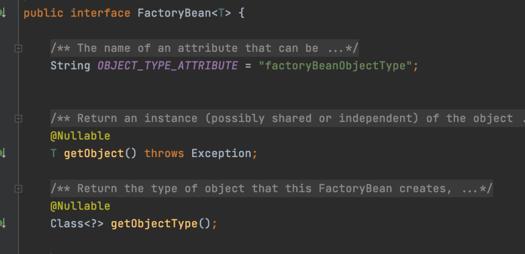 当我们通过配置文件、注解声明或者是注册BeanDenifition的方式,往Spring容器中注入了一个class类型为FactoryBean类型的Bean时候,其实真正注入的Bean类型为getObjectType方法返回的类型,并且Bean的对象是通过getObject方法返回的。