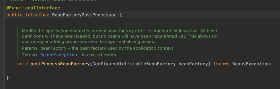 public void postProcessBeanFactory(ConfigurableListableBeanFactory beanFactory) throws BeansException {