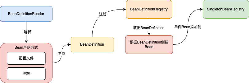 有了BeanDefinition这个概念之后,再来看一下配置文件和注解声明这些方式往Spring容器注入Bean的原理。
