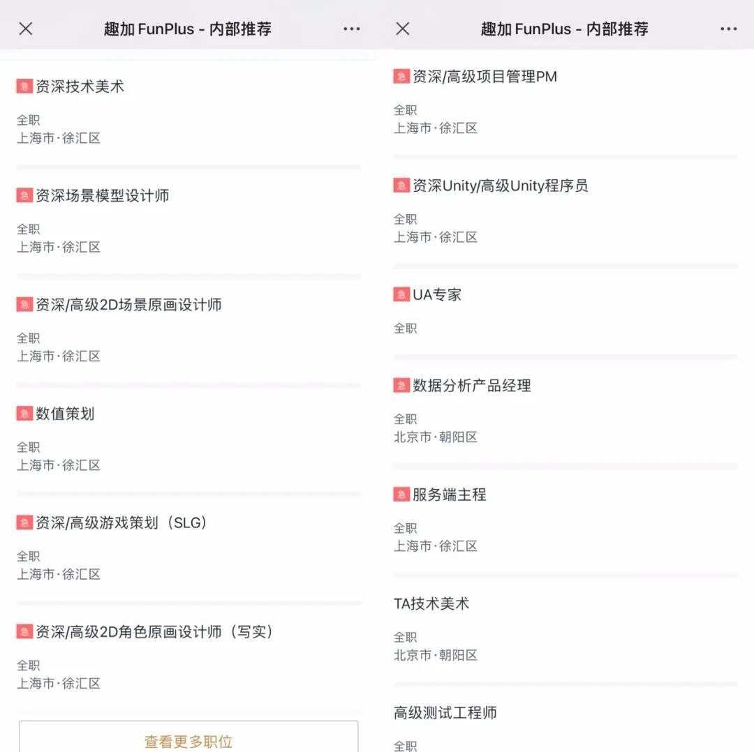 FunPlus招聘页面的许多上海岗位都显示「急」