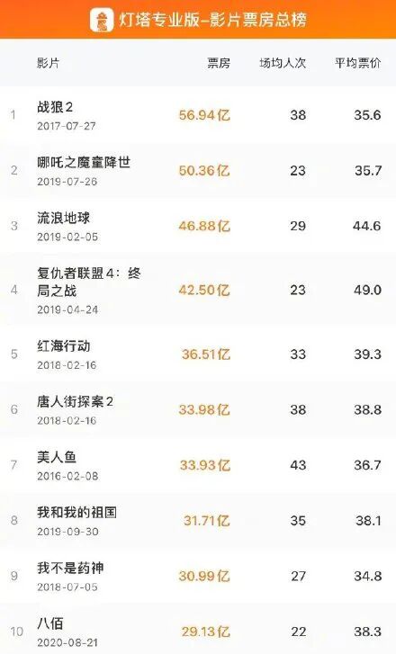 《哪吒之魔童降世》居中国电影市场影史票房榜第二名。图源灯塔数据