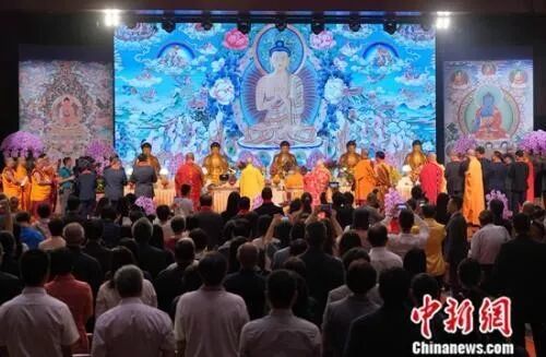 为庆祝新中国成立70周年,近千名来自三大语系佛教的高僧大德和嘉宾们14日齐聚香港举行祈福盛典,凝聚海峡两岸暨港澳地区佛教界力量,表达对祖国和香港的美好祝愿。