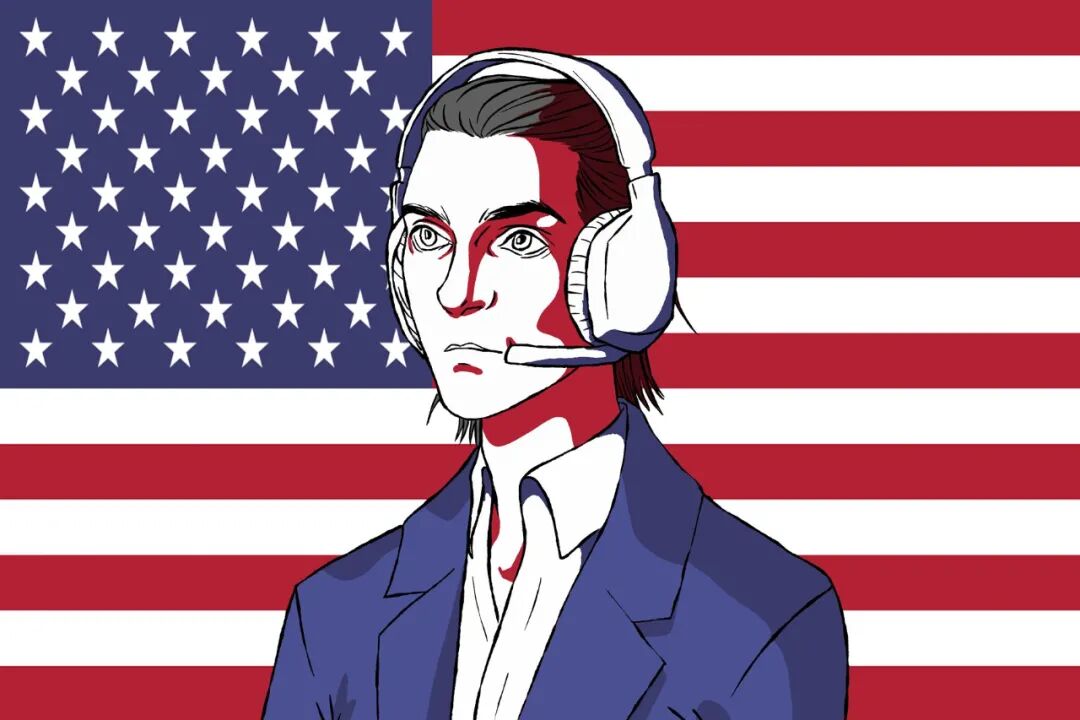 置顶推文里,头戴电竞耳机的Watkins,背靠飘扬的像素风星条旗,面对镜头做起了自我介绍。