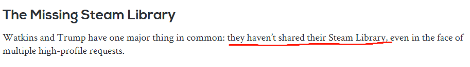 因为没有分享自己的Steam库,有文章指出他和川普没什么两样