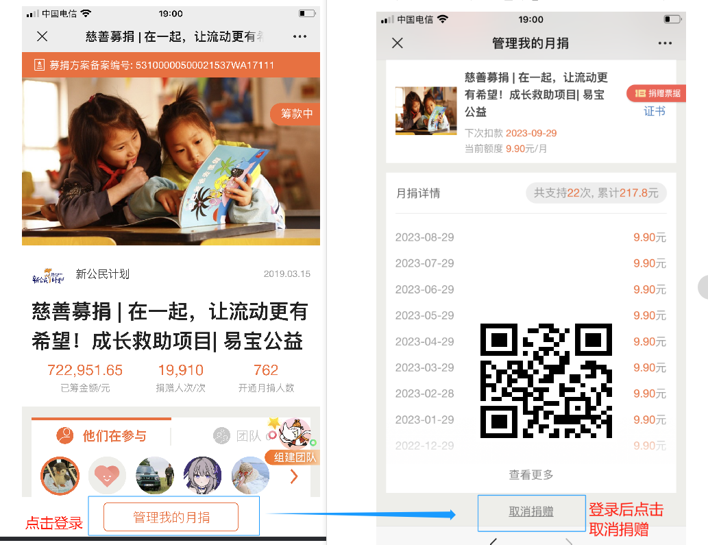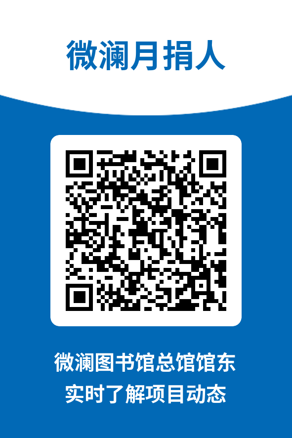如果你已经是“新公民计划”的月捐伙伴,并愿意继续资助我们,可以取消儿慈会上的月捐(方法:扫码以下第一图,如蓝色箭头指示)。并通过以下第二张图片二维码,报名微澜图书馆总馆的“馆东”,为微澜图书馆总馆做月捐的支持。