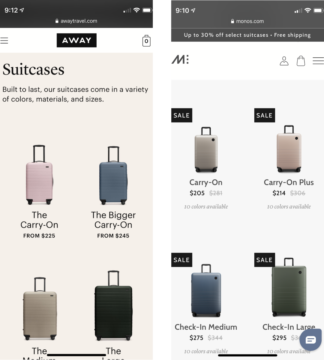 这不仅仅只是一个假设。行李箱公司Away 目前已筹集了1.81亿美元的资金,其最新估值为14亿美元。这家公司值得关注不仅是因为其惊人的增长,也是因为它很早就开始盈利。当然,这种成功吸引了像Monos 这样的模仿者。