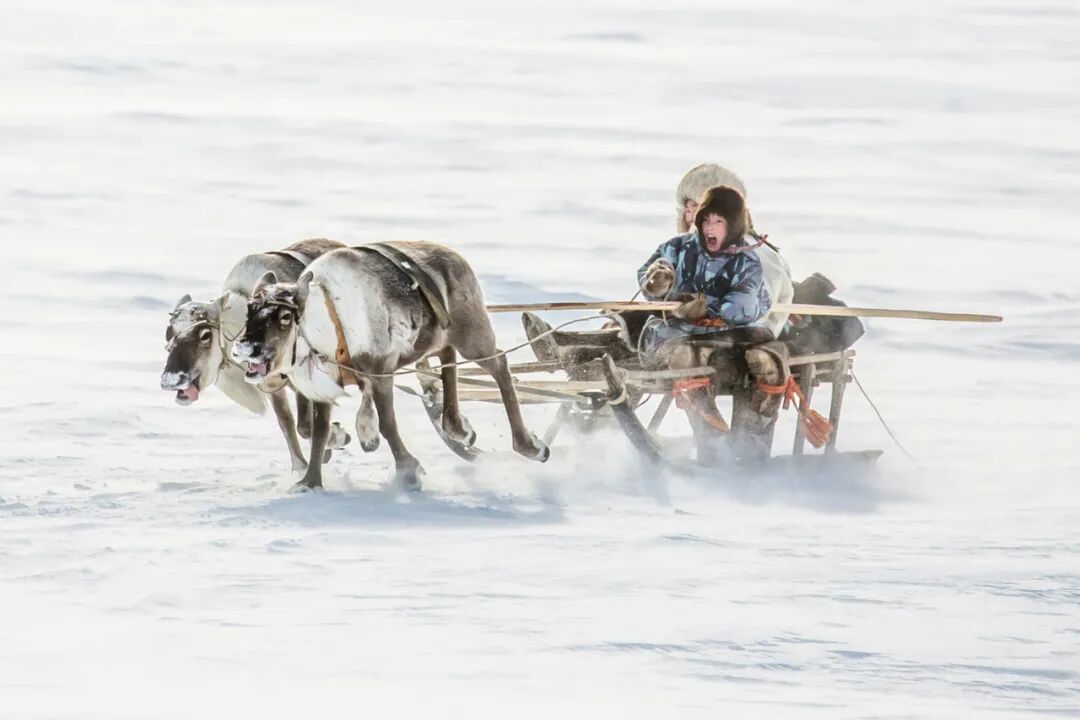 △ 俄罗斯亚马尔半岛,当地人在冬天的特色交通工具——鹿拉雪橇。