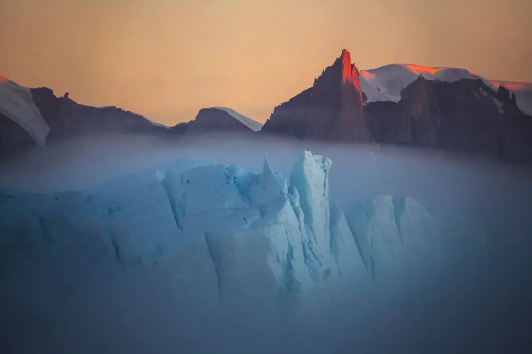△ 丹麦格陵兰岛, 冰山上的雾。