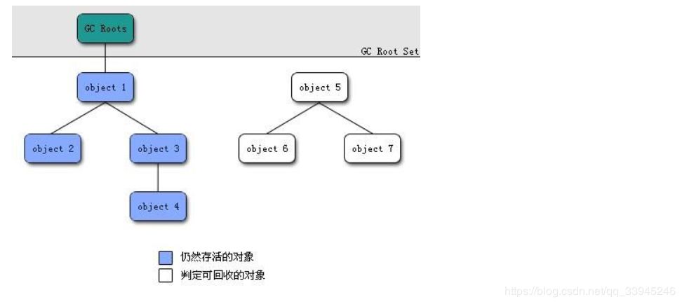 这个算法的基本思想就是通过一系列的称为 “GC Roots” 的对象作为起点,从这些节点开始向下搜索,节点所走过的路径称为引用链,当一个对象到 GC Roots 没有任何引用链相连的话,则证明此对象是不可用的。