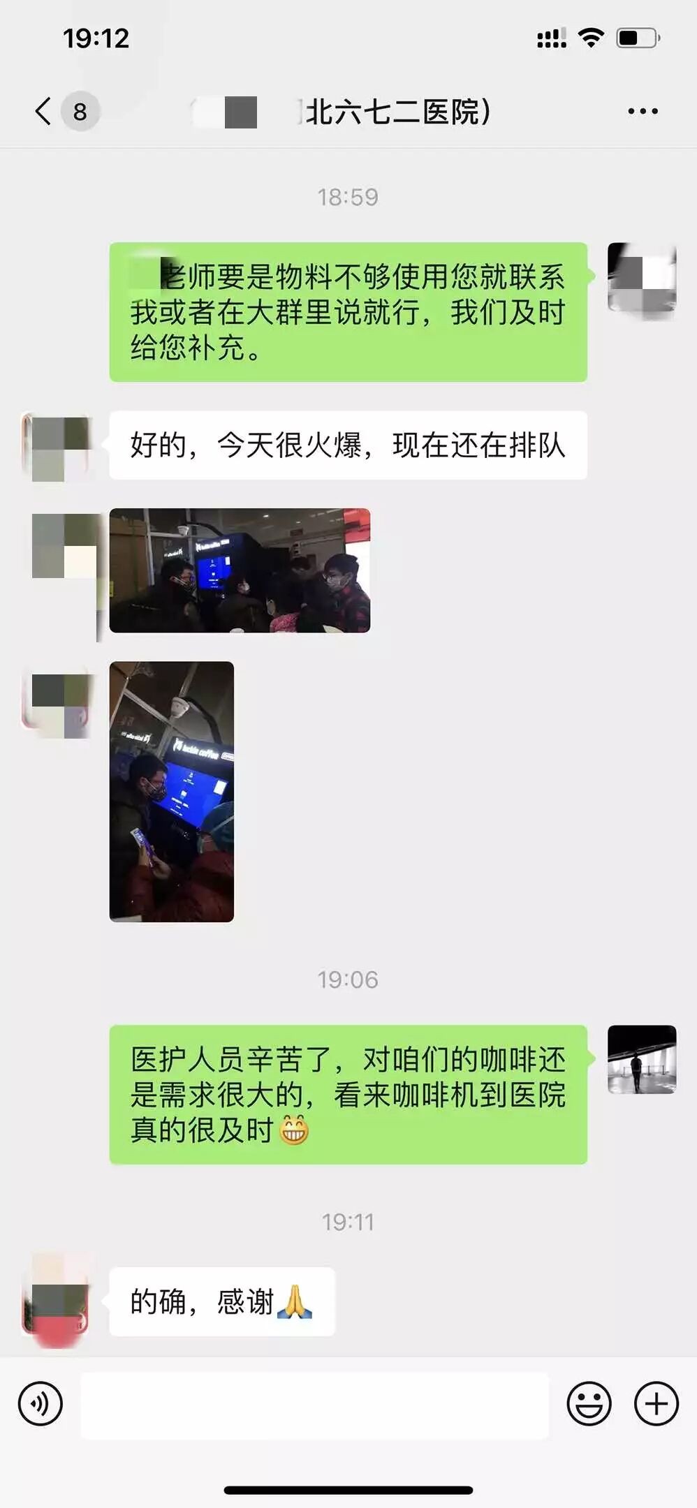 在接到六七二医院请求后,他们很快发现,需要一杯热咖啡的医院不止这一家,而相比门店外送,和门店一样的出品标准,全过程无人工参与、无接触、更安全,铺设速度快、效率高的无人咖啡机更适合“战疫”。最重要的是,它们能24小时工作,确保给每位需要“来一杯续命”的医生护士供上热咖啡。