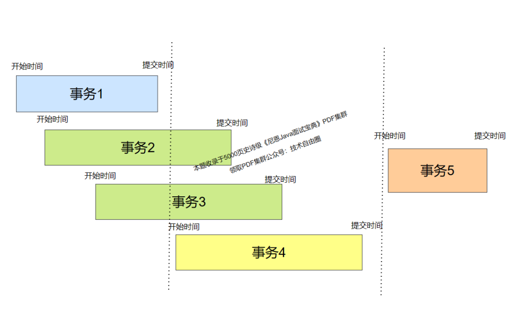通过遵循这些对比规则,数据库系统可以保证事务读取的数据是一致的、可靠的,并且与其他并发事务的操作相互独立。40岁老架构师用一张图,给大家弄一个例子,展示一个下面的场景。下面的图中,对于事务4来说,可以看到的数据版本,是事务1的已经提交的数据: