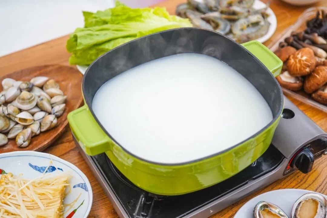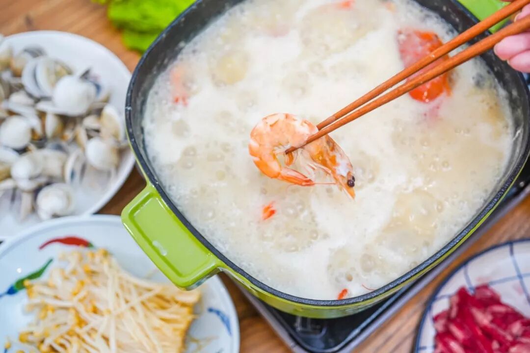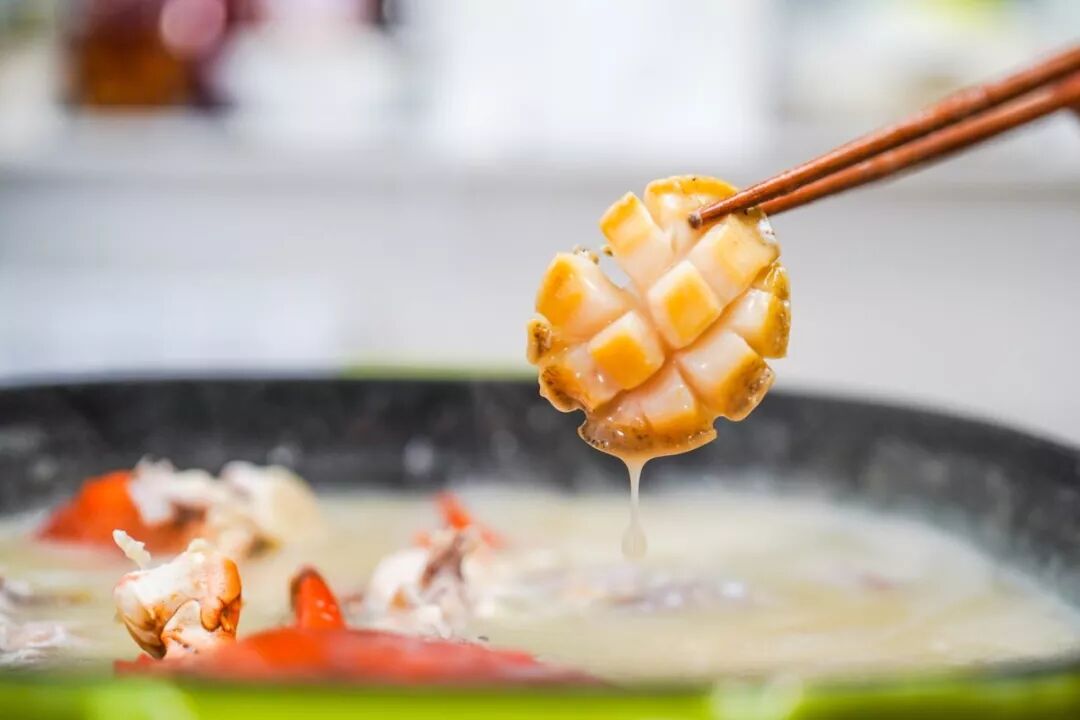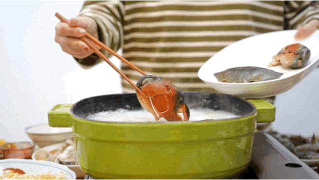 粥底火锅可以完美呈现小海鲜的风味,小海鲜也会让粥底变得更鲜更有味。