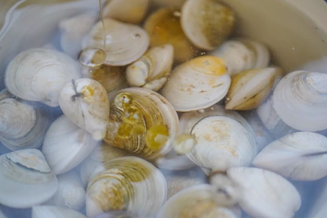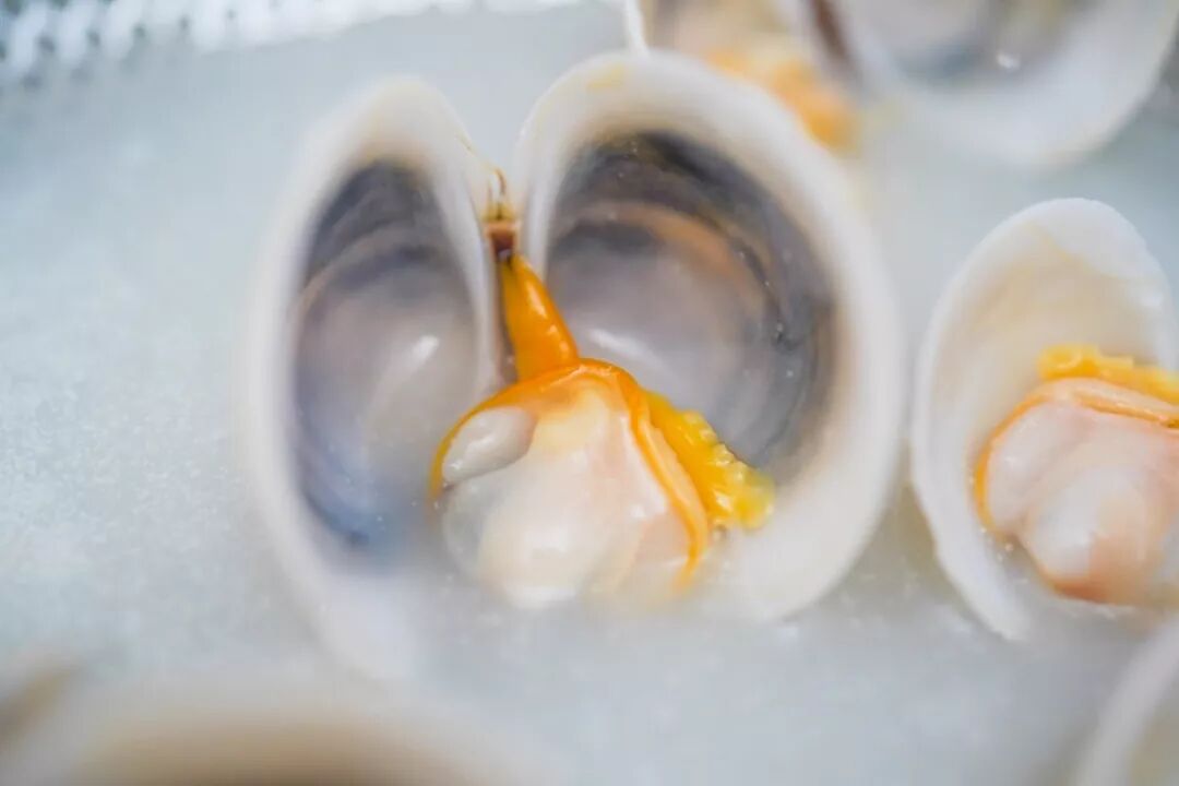 粥水温度高,食材一入锅,鲜味便被牢牢锁住,同时,绵滑的粥,也赋予食物更加柔滑的口感。蛤蜊买来后,加几滴油让它吐沙。等粥底开锅后下进去。