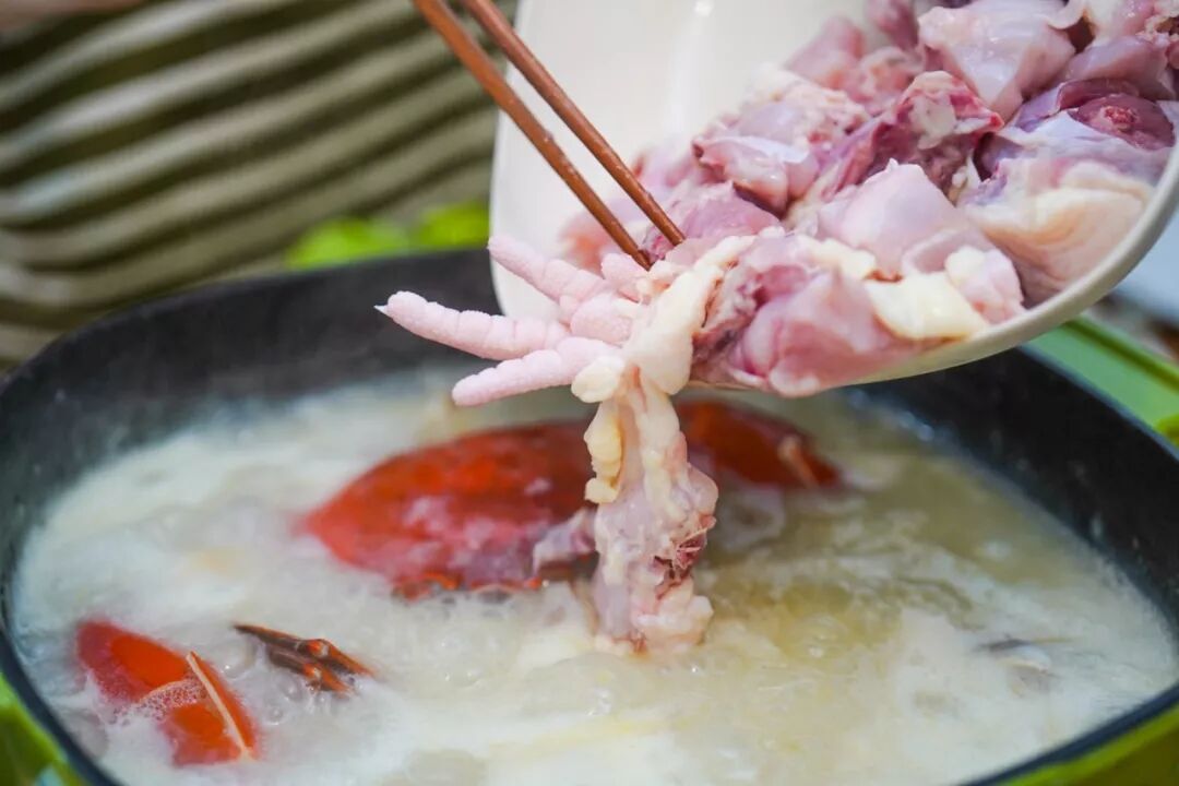 广东的菜场会有清远鸡卖,上海的话,我们选了三黄鸡,一定要把多余血水处理干净哦!粥底火锅涮出的鸡肉,真的比任何火锅烫出来的都要嫩!还可以涮点牛肉,但牛肉要选鲜切牛肉片。冷冻的肥牛卷血沫多,会破坏粥底的味道,不能用。