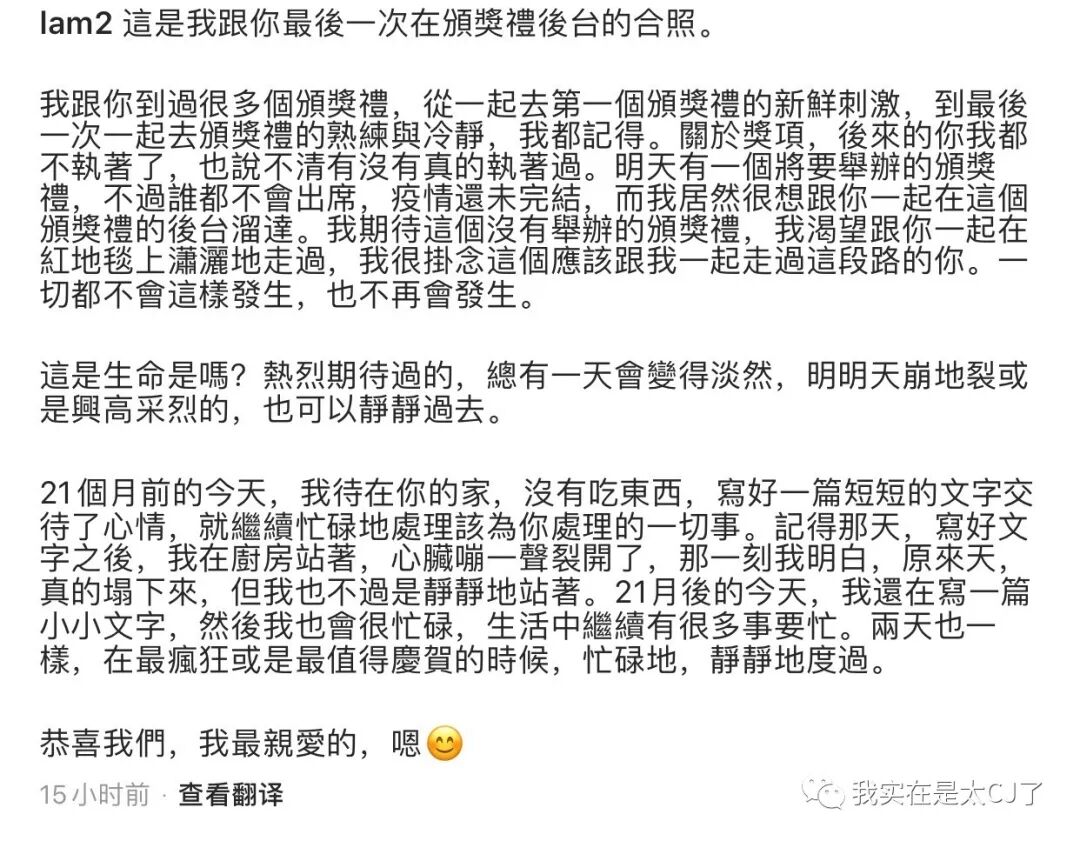 余静萍料理完后事后复工,曾国祥也曾发文感慨过她的不容易。