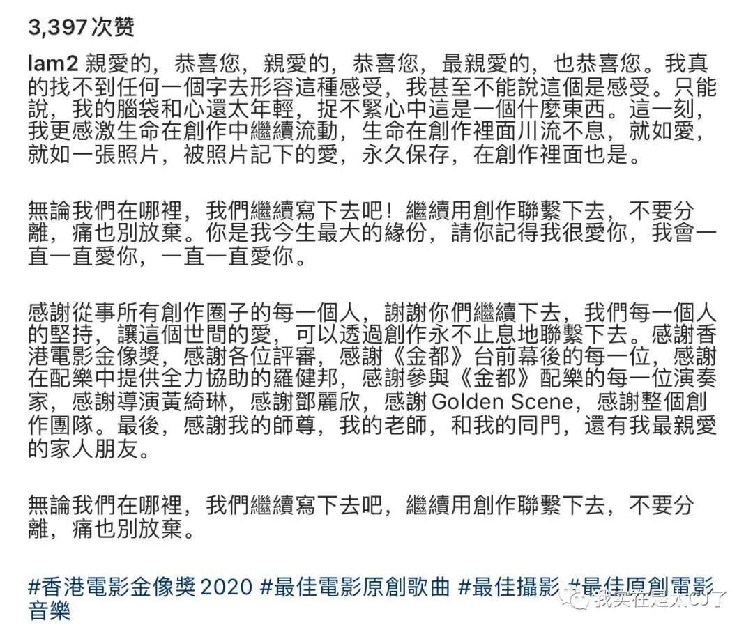 在奖项公布前的十几个小时里,林二汶发了这样一条ins👇
