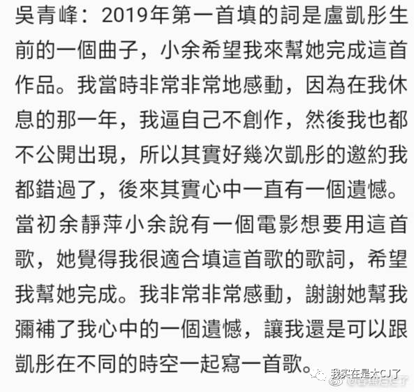 他也确实拒绝过卢凯彤的好几次合作,以至于卢凯彤离世之后,吴青峰的内心一直留有遗憾。