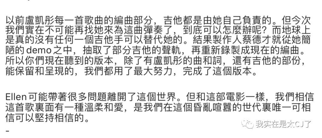 从开始到最后,卢凯彤的精神都参与着《少年的你》的创作,答应了的创作也应该被实现吧?