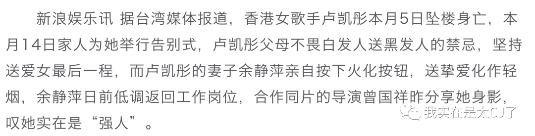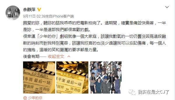 而卢凯彤出事的时候,《少年的你》还在重庆拍着,连余静萍返港料理后事都是接到噩耗后才匆匆而行的。