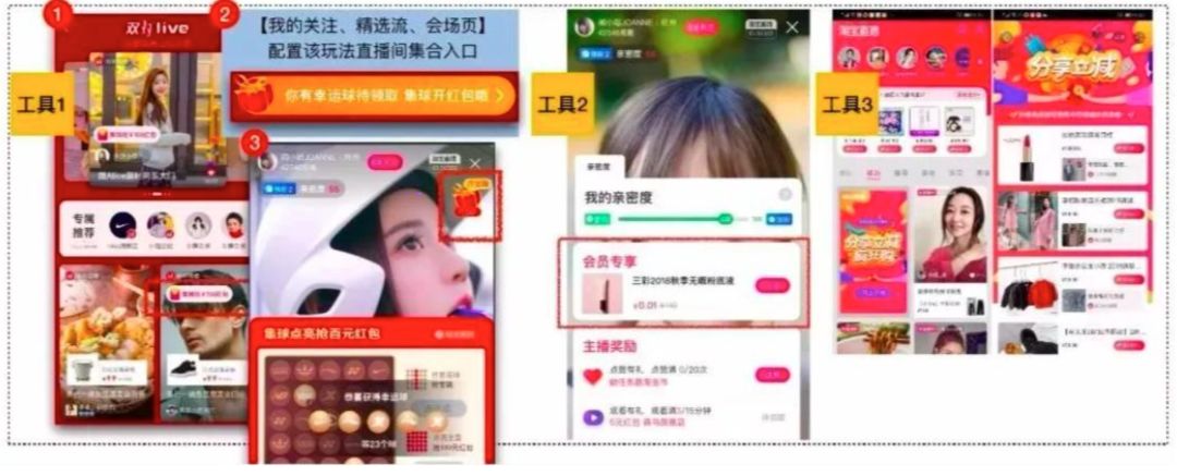有了场景,就需要有对应的营销工具,从而达成营销目标。针对最重要的三个营销工具:直播,微淘,以及短视频。详细解读如下。