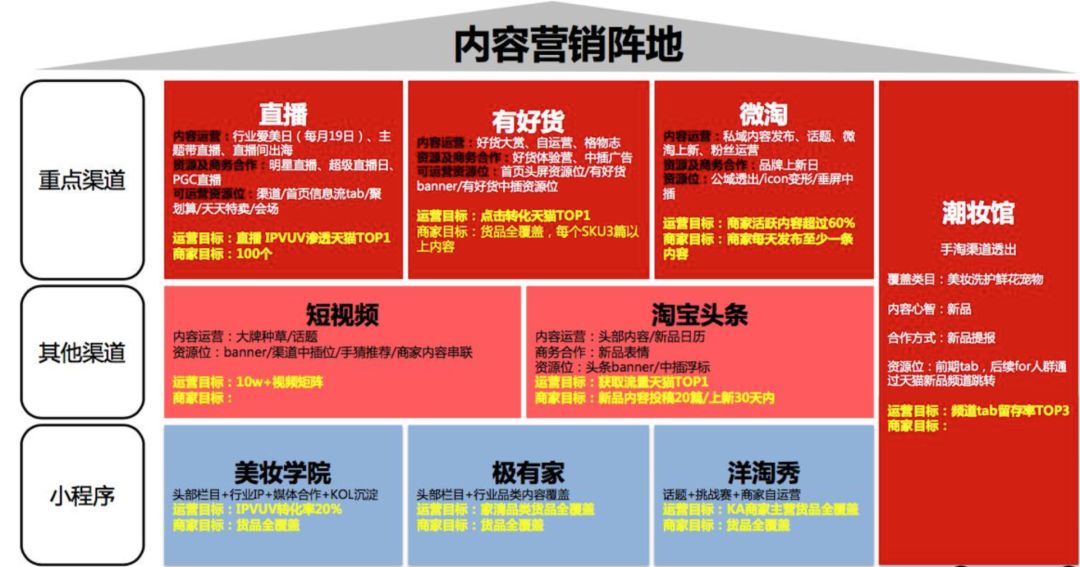 那么,整个天猫生态,又有着什么样子的内容营销阵地呢?