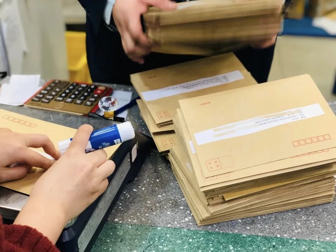 ▲2019年12月,张萌和志愿者们为上海市人大代表、政协委员寄出建议信。受访者供图