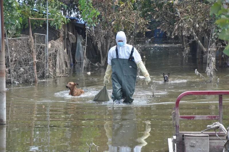 还有些田园犬,一些村民撤离时太过慌张,没把狗放出来,溺死在了铁笼里。
