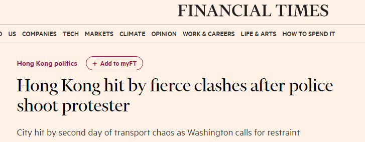 2019年11月12日,《金融时报》刊登了一篇黄淑琳参与写作文章,标题赫然写道“警方枪击示威者后,香港发生激烈冲突”,文章却对警方开枪原因闭口不谈。事实上,此前一天香港警方就已经回应,事发当日乱港暴徒发起所谓的“三罢”,在多区瘫痪交通及纵火,期间一名暴徒试图上前抢夺警方配枪,警察才迫不得已开枪。