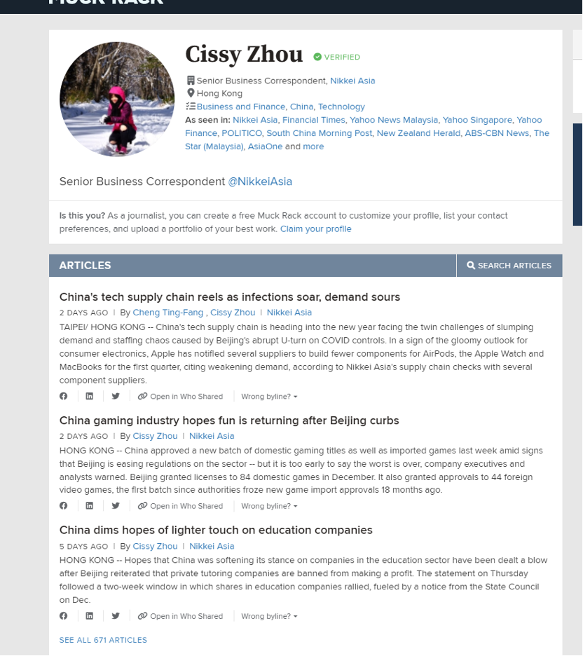 当然,这篇有Grace Li、Marrian Zhou和Cissy Zhou参与的拉清单文章,并不是她们仨给西方媒体纳的唯一的一张投名状,翻看她们过去的涉华报道以及在社交媒体上谈论中国时的种种表现,不禁让人想起我们已经曝光过的肖慕漪,SupChina之类。他们也确实是一个同温层中的生物。