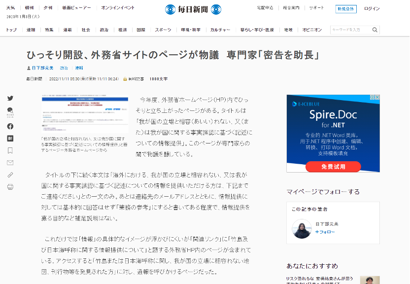 第三,根据日本每日新闻的消息,日本外务省开设了一个新的页面,鼓励相关人士为其提供与日本在海外立场相左或误解日本的相关信息。例如:如果有人将日韩争议岛屿称作“独岛”,日本外务省将鼓励向其“告密”。日本媒体在高喊“捉贼”的时候,是不是也该照照镜子看看自己?