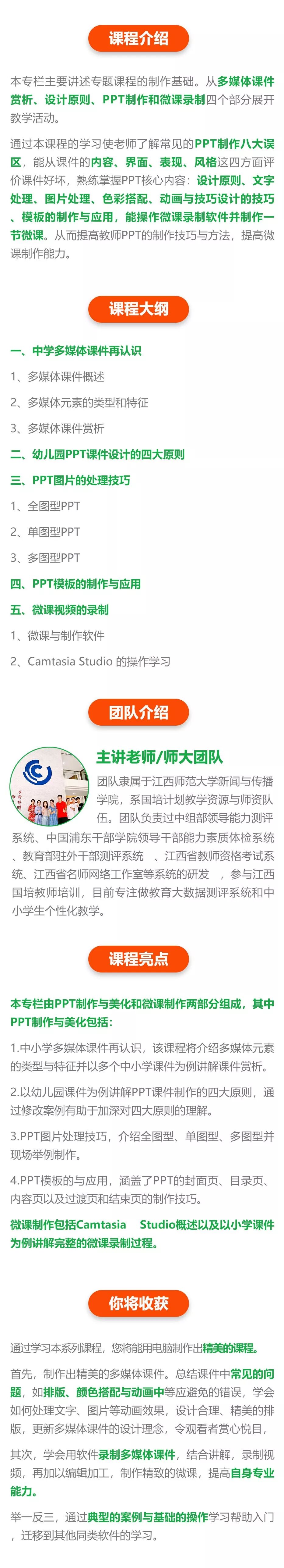 上图均是江西省各地市老师自己建设的网络专题课程,您是否也想建设属于自己的专题课程?但是具体又要怎么操作呢?不要担心,江西教师网为您助力,江西教师网全新改版,助力优质教育资源生成与配置,促进教育均衡发展。我们还专门开设了《网络专题课程的制作基础》。快来看看课程介绍↓↓↓