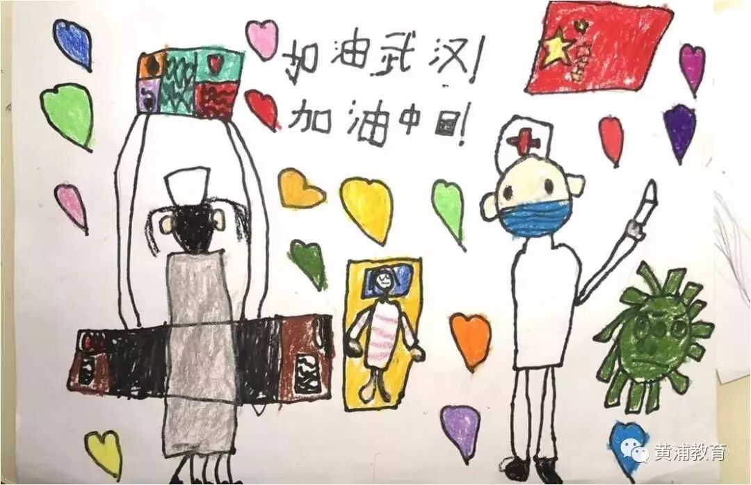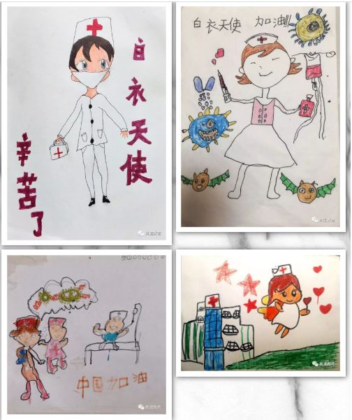 黄浦区思南新天地幼儿园和闵行区浦江之星幼儿园的孩子们用自己的画笔致敬医护人员们。 |