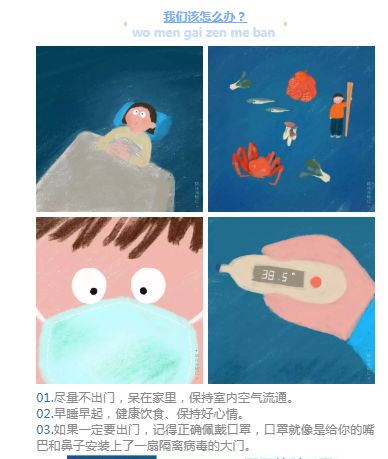 面对来势汹汹的新冠病毒疫情,老师们用自己的方式引导放假在家的孩子和家长们“不慌不怕”,健康作息健康生活,在家争做战“疫”小战士。