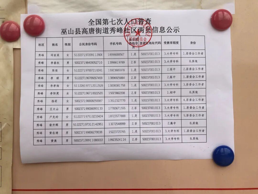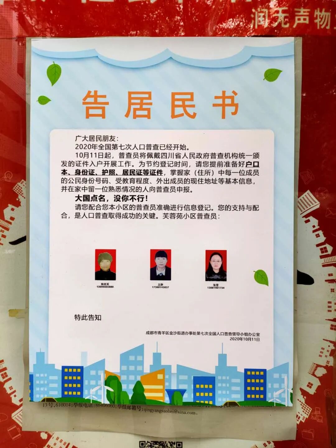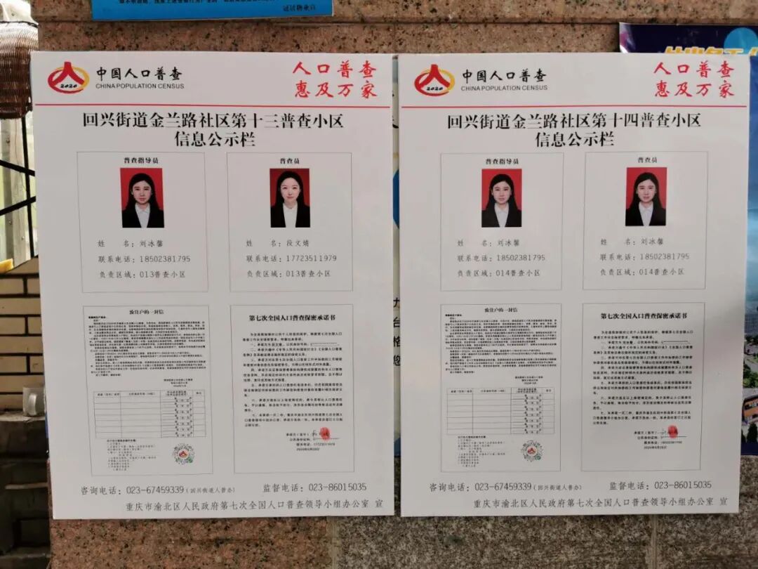 渝北区回兴街道金兰路社区第13、14普查小区两员公示