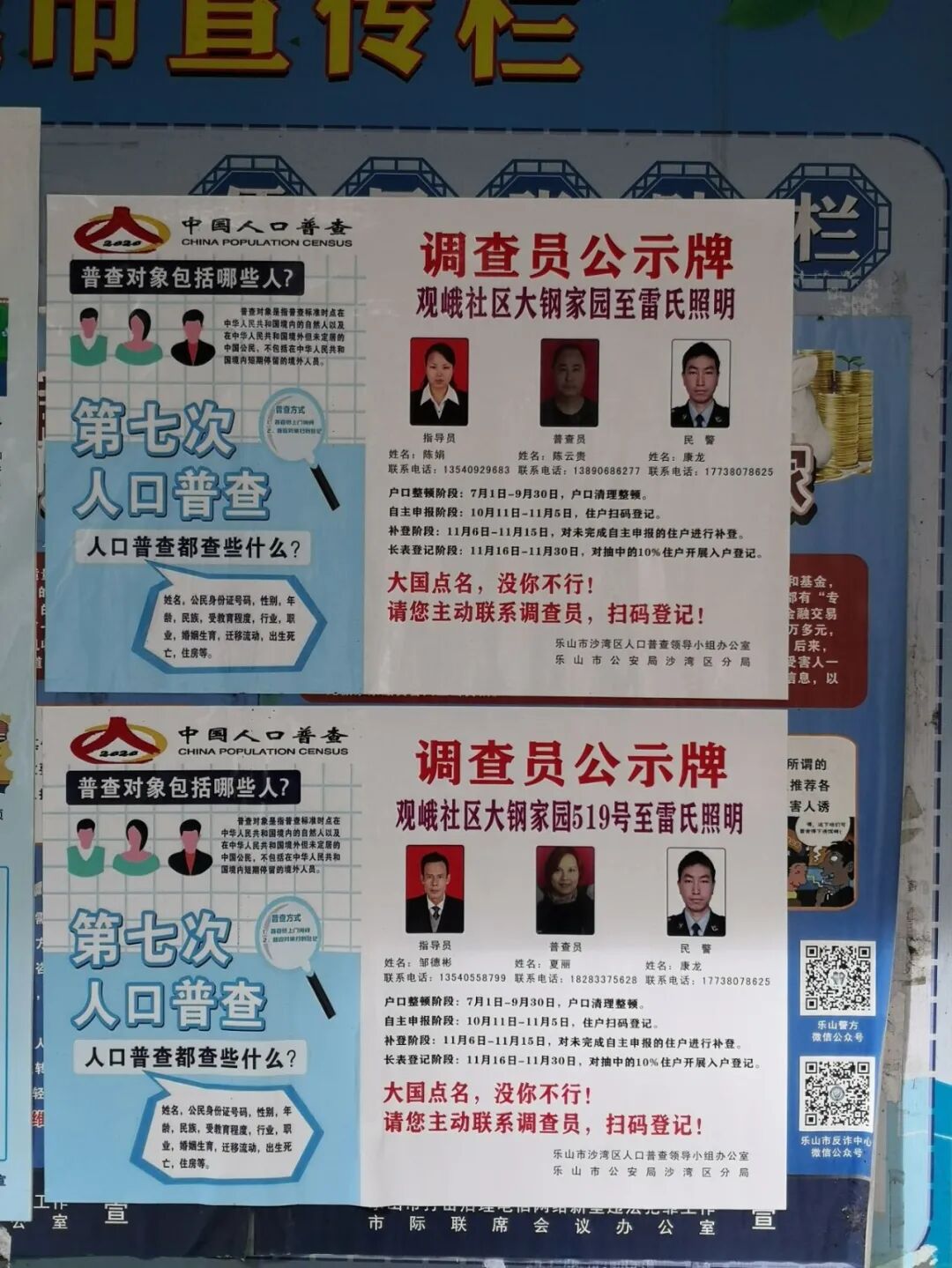 自贡市自流井区飞龙峡镇星火村普查两员公示照