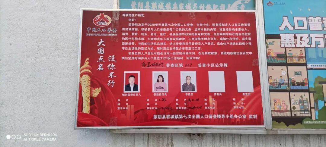 临沂市蒙阴县联城镇禹家城子普查区009普查小区两员公示