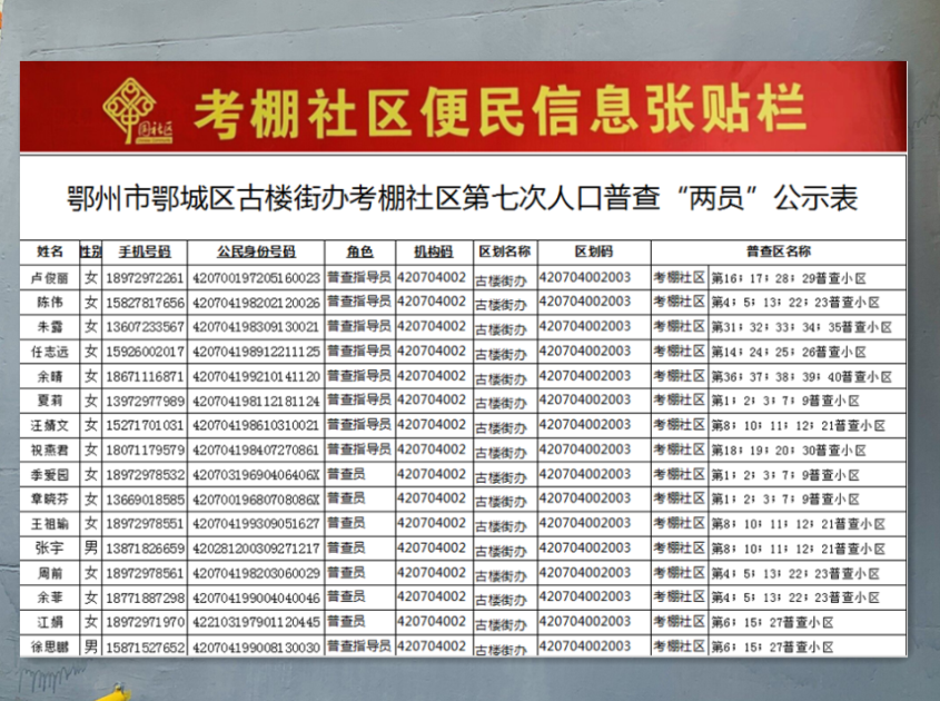 鄂州市鄂州区古楼街办考棚社区“两员”公示图片