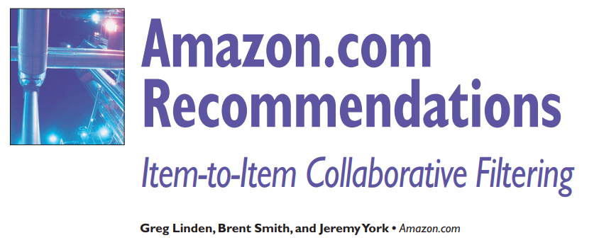 亚马逊的经典论文,其他的论文其实都是在这基础上建立起来的。在Amazon,工程师们利用推荐算法以其在电子商务网站的用途而著称,它们利用有关一个顾客的兴趣作为输入,来产生一个推荐商品的列表。很多应用仅仅使用顾客购买并明确表示代表其兴趣的商品,但它们也可以利用其他属性,包括已浏览的商品、人口统计特征数据、主题兴趣,以及偏爱的艺术家。