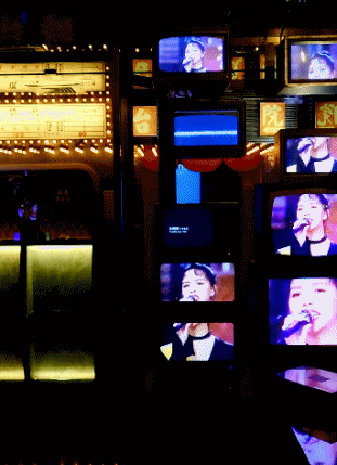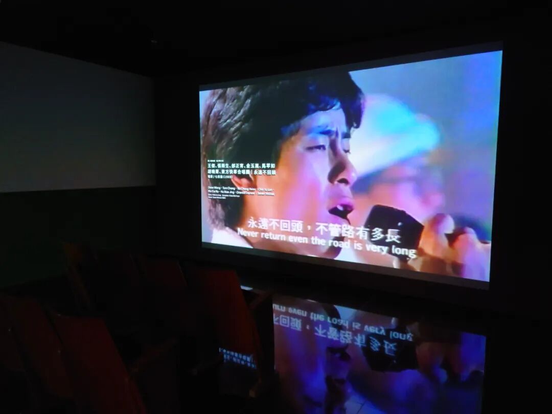 布置成一处电影院售票厅,走进去放映间,屏幕上放映着那些经典的电影配乐。