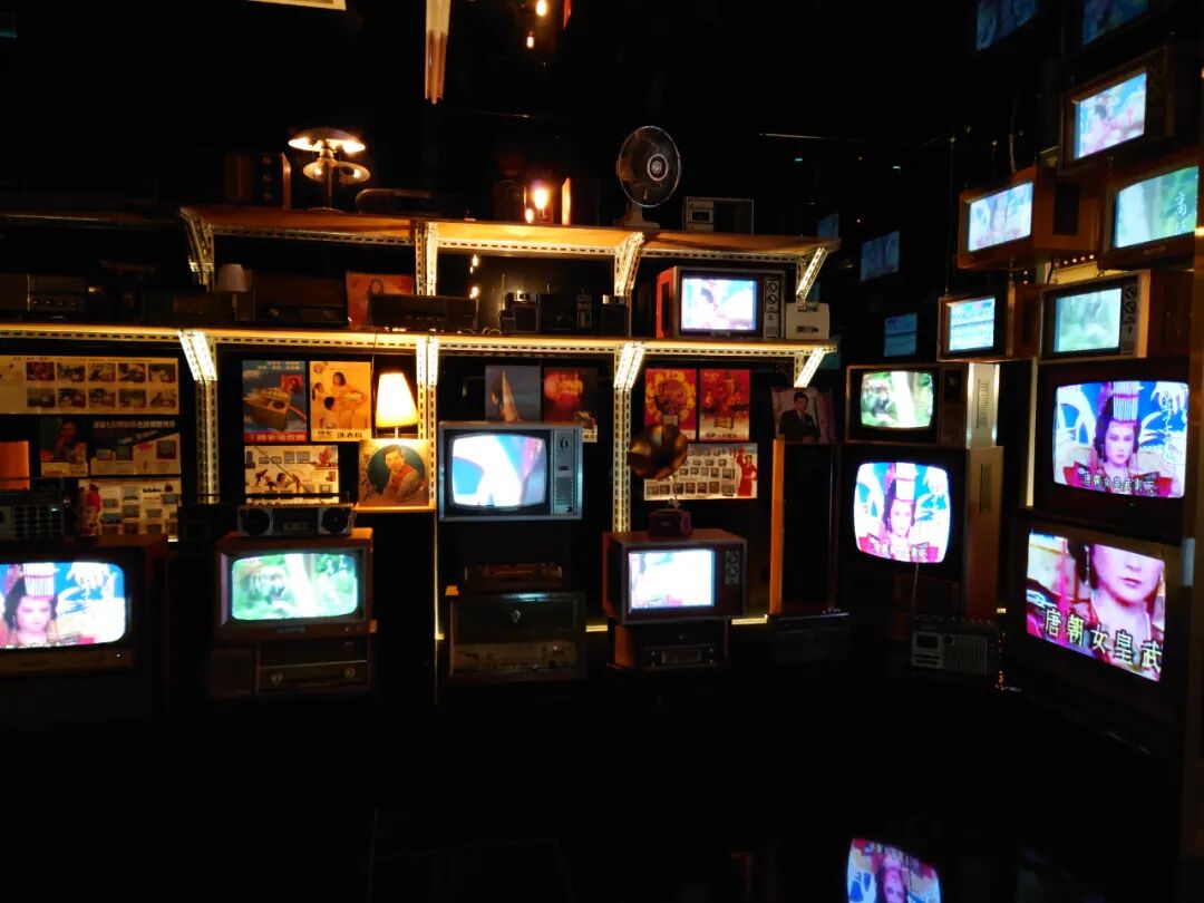 摆了无数老电视,收录音机,随身听,老电器及唱片在货架上,怀念的CRT显像仪播放着那些关于你青春的片段,忍不住回想起全家一同坐在客厅看连续剧的往事.....