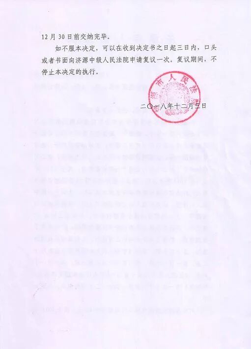 济源市人民法院认为,新蒲建设集团有限公司的行为违反了民事诉讼诚实信用原则,实为恶意滥用诉讼权利,严重浪费了审判资源,妨害了司法活动的正常进行。依照《中华人民共和国民事诉讼法》有关规定,济源市人民法院于2018年12月3日对新蒲建设集团有限公司作出30万元的罚款决定。新蒲建设集团有限公司对该决定不服并向济源中级人民法院申请复议,后被依法驳回。