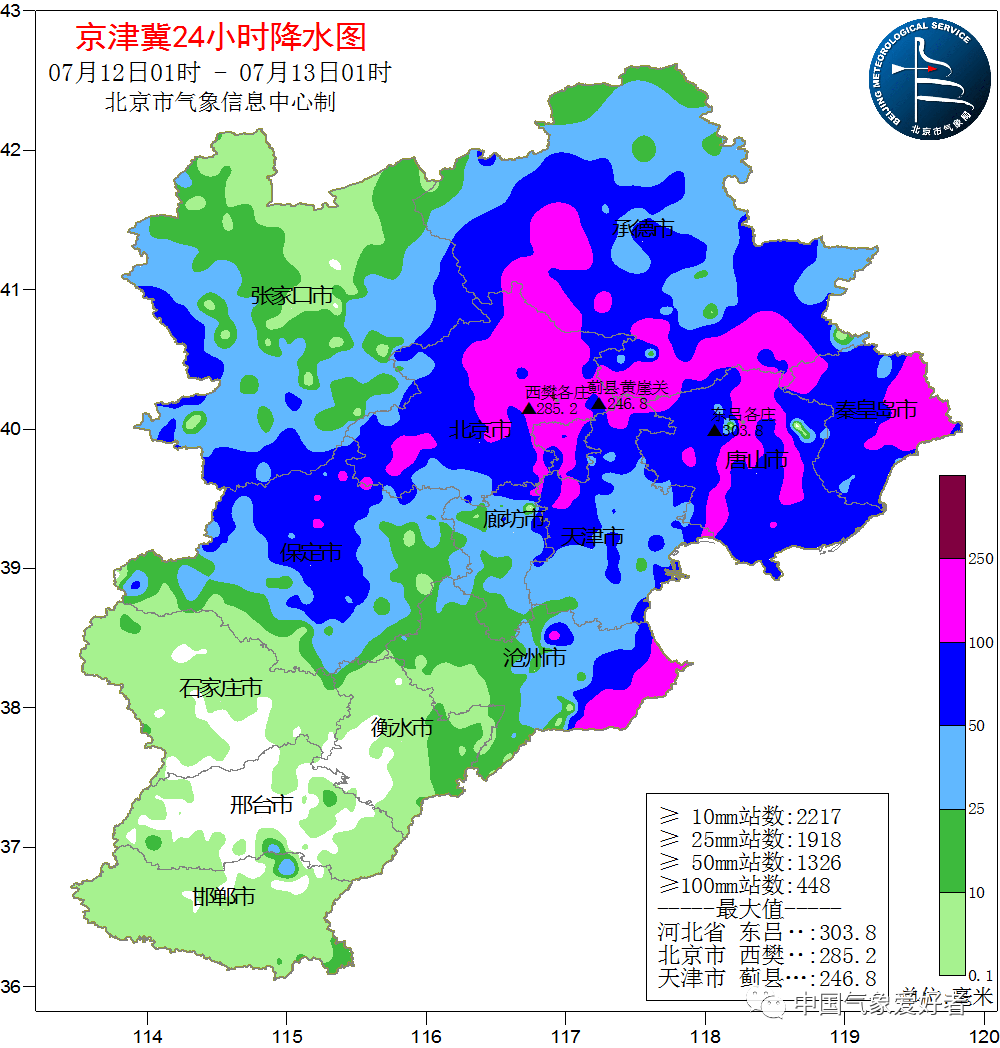 7月11-12京津冀雨量图,来自北京气象
