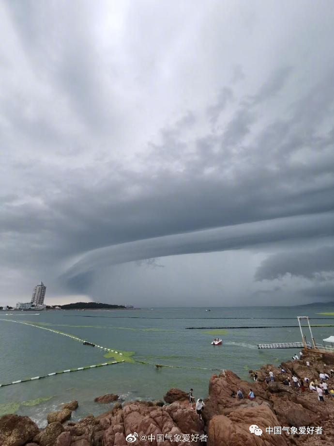 7月13日白天,青岛上空壮观的弧状积雨云。来自@计划单列养成系爱豆