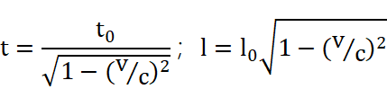 狭义相对论对时空相对性的解释,重点在于时间延缓效应和尺度缩短效应,其公式如下: